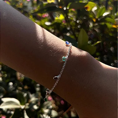 Pulseira Bracelete Feminina Pedra Zirconia Colorida Ponto De Luz Prata 925