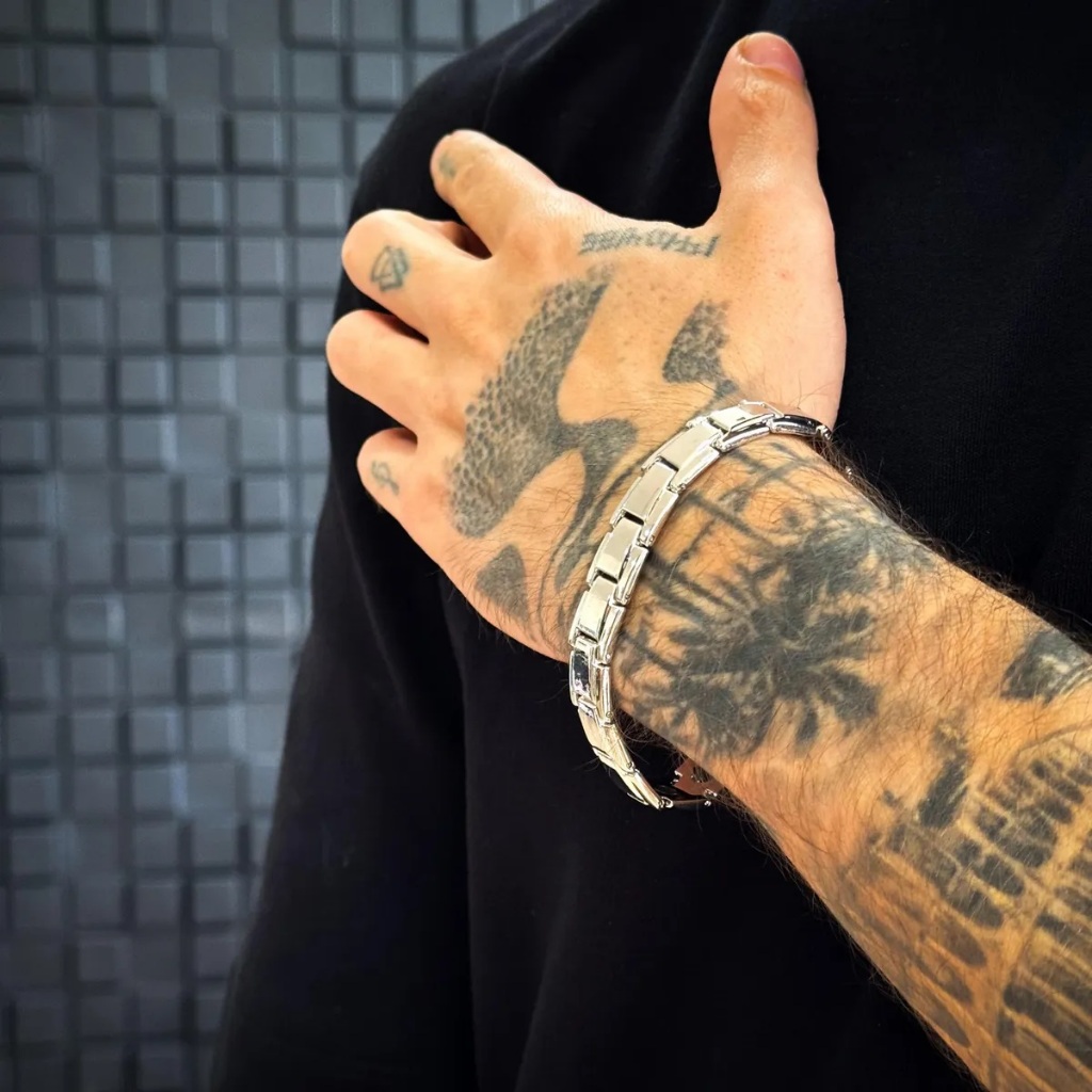 Pulseira Magnética Unissex Aço Inoxidável – Sofisticação e Estilo Produto a pronta entrega no Brasil. Fotos reais realizadas do próprio item que será enviado (vedada reprodução). Os envios serão realizados em no máximo 24 horas após a compra. A Pulseira Magnética de Aço Inoxidável é a escolha perfeita para quem busca um acessório moderno, sofisticado e resistente. Seu design minimalista e versátil combina com diferentes estilos, desde o casual ao mais elegante. Por que escolher essa pulseira? Feita em aço inoxidável de alta qualidade, resistente ao desgaste. Design elegante e atemporal. Disponível em quatro cores: Dourada, Prateada, Prateada com Dourado e Preta com Dourado. Fecho seguro e confortável, proporcionando um ajuste firme ao pulso. Ideal para uso diário ou para ocasiões especiais. Especificações: Material: Aço inoxidável Cores disponíveis: Dourado, Prateado, Prateado com Dourado e Preto com Dourado Fecho de encaixe seguro Tamanho: 21cm Largura: 1,1cm Cuidados de uso: Evite contato direto com produtos químicos agressivos. Para manter o brilho, limpe com um pano seco e macio. Não é à prova d’água, evite imersão em líquidos. Perguntas Frequentes (FAQ): A pulseira é ajustável?Não, mas possui um fecho confortável e seguro. É resistente à oxidação?Sim, o aço inoxidável proporciona alta durabilidade e resistência à corrosão. Combina com quais estilos?Seu design minimalista e sofisticado se adapta a diferentes estilos, desde o casual ao social. Adicione um toque de sofisticação ao seu visual. Compre agora e receba rapidamente!