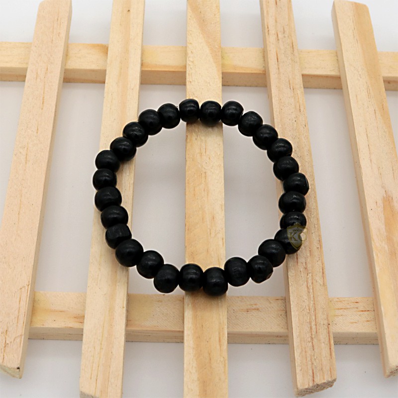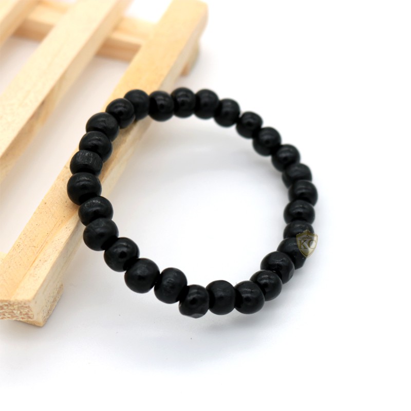 pulseira bracelete masculina bolinha de madeira 8mm com fio elástico preto oferta