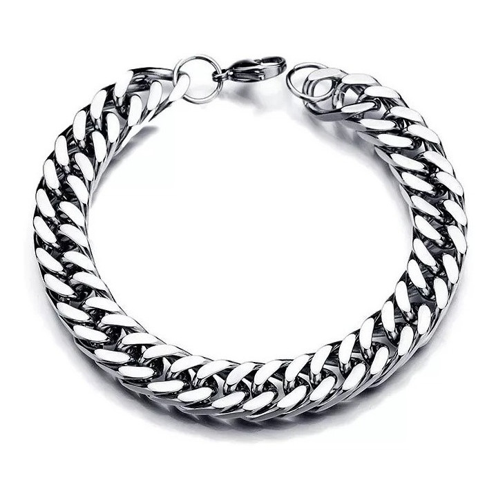 Pulseira Bracelete Masculino Feminino Elo Grumet Duplo 8mm Largura Aço Inox Cirurgico Prata