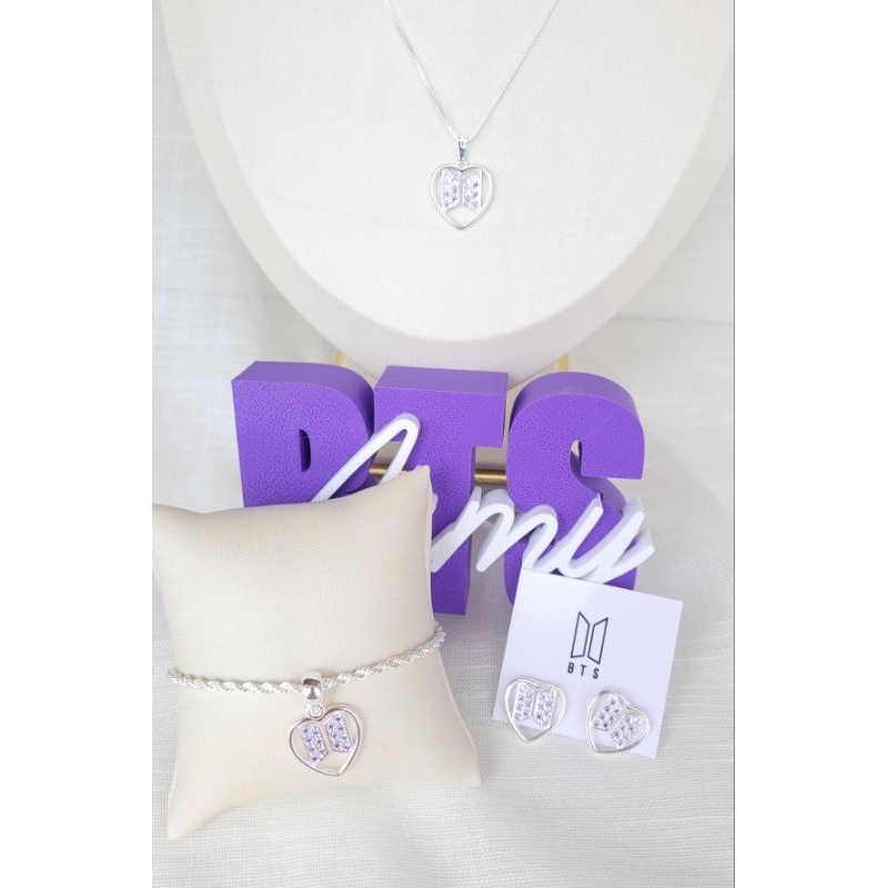 Lancamento da nossa Coleção BTS para comemorar a volta dos meninos em estilo Arirang!! 💜Pulseria Folheada a Prata 925 com zirconias lilas 💜Colar Folheado a Prata 925 com zirconias lilas 💜Conjunto Colar + Pulseira + Brinco * Brinde: 1 photocard aleatório do BTS A nossa coleção " Coração Army" veio para traduzir todo nosso amor pelos meninos do BTS 💜 O presente perfeito para a Army🫰