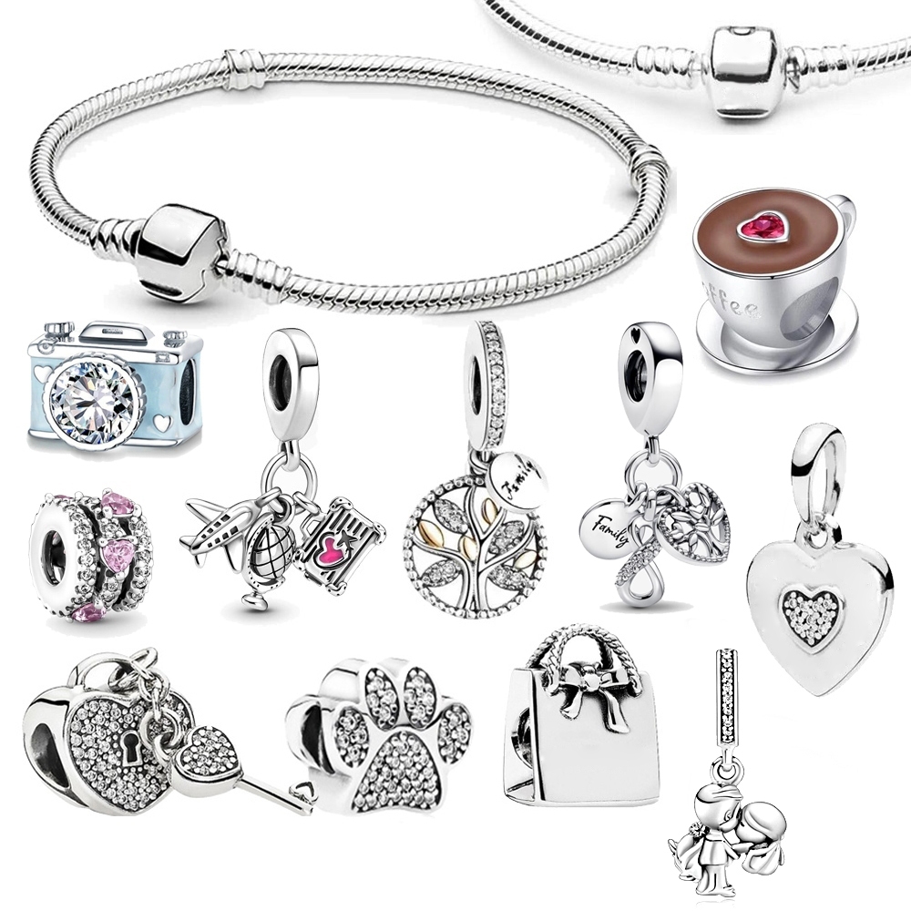 Pulseira Cadeia De Prata 925 Berloque Encantos Clássico Inicial Charme Pingente Pulseiras Bijuterias Jóias Charms DIY