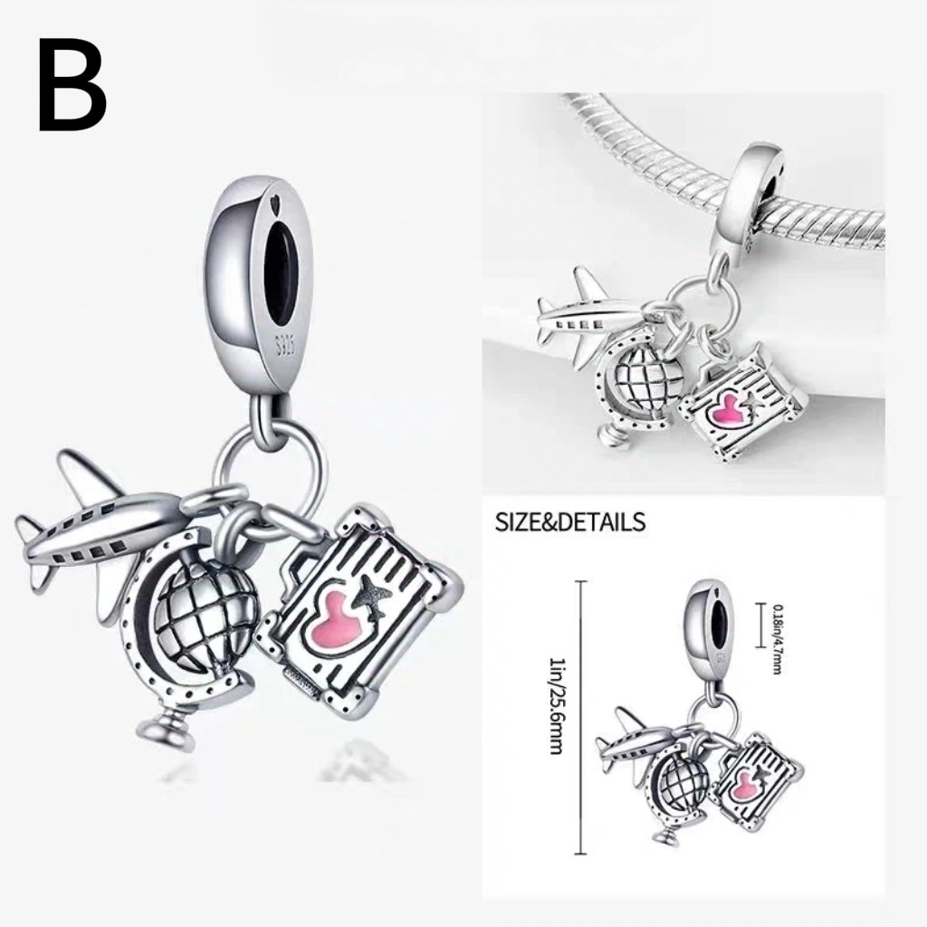 Pulseira Com Pingente De Banhado Prata Esterlina S925 Pingente de Terra em forma de balão e avião