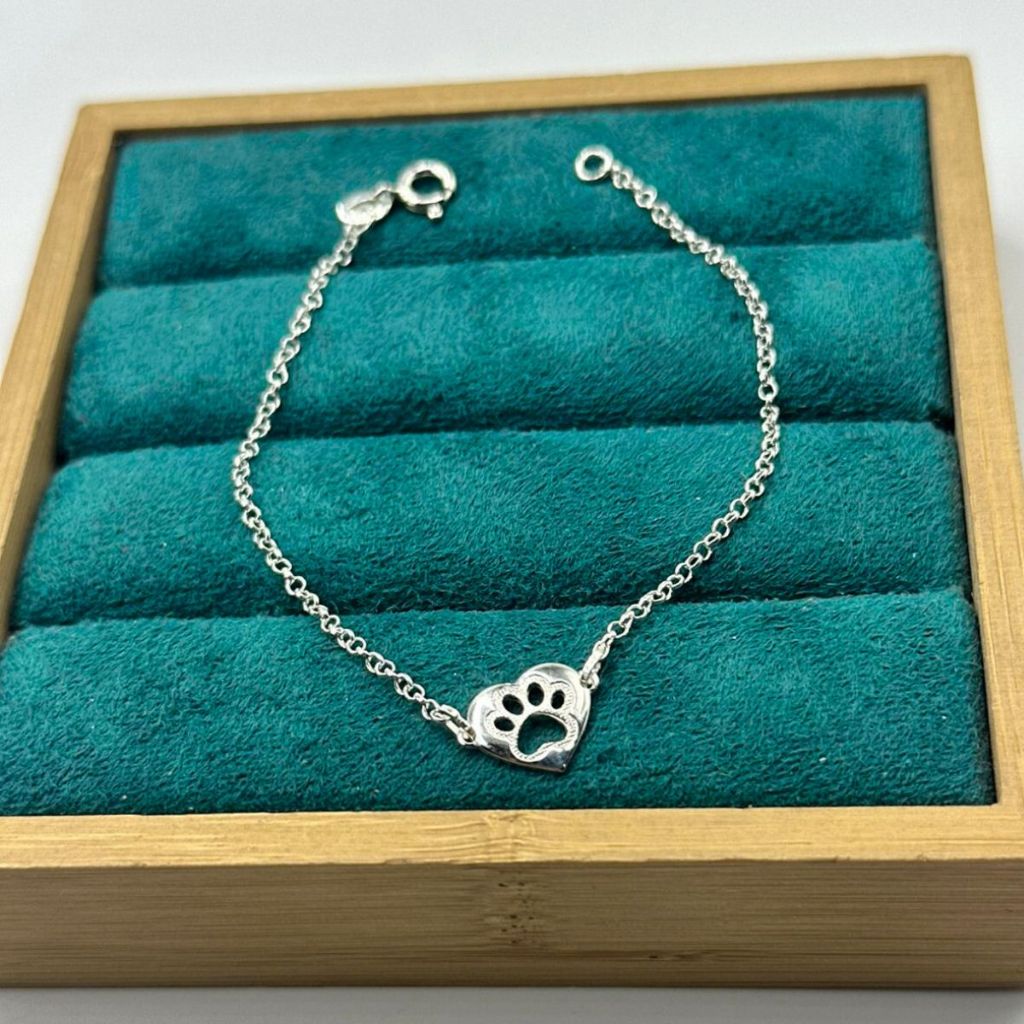 Pulseira coração patinha pet vazada - Prata 925