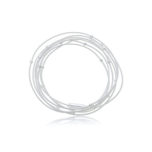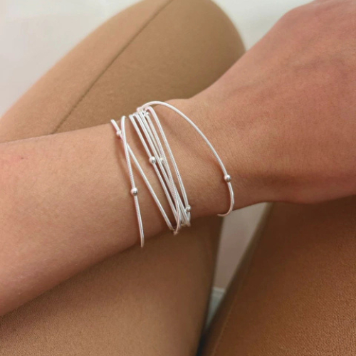 Pulseira Corda de Violão com Bolinhas Banhado a Prata (SEMIJOIA)