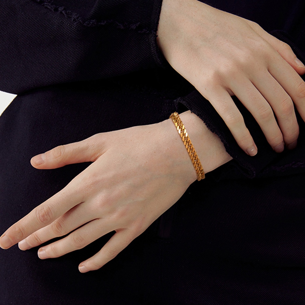 Pulseira Cubana Vnox 18K Folheada A Ouro Para Menina Feminina , Elo Clássico De Corrente De Aço Inoxidável
