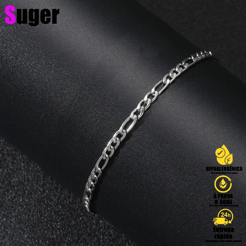 Pulseira de aço inoxidável para masculino feminino punk casual figaro corrente fina pulseira colar jóias rapper amante presente