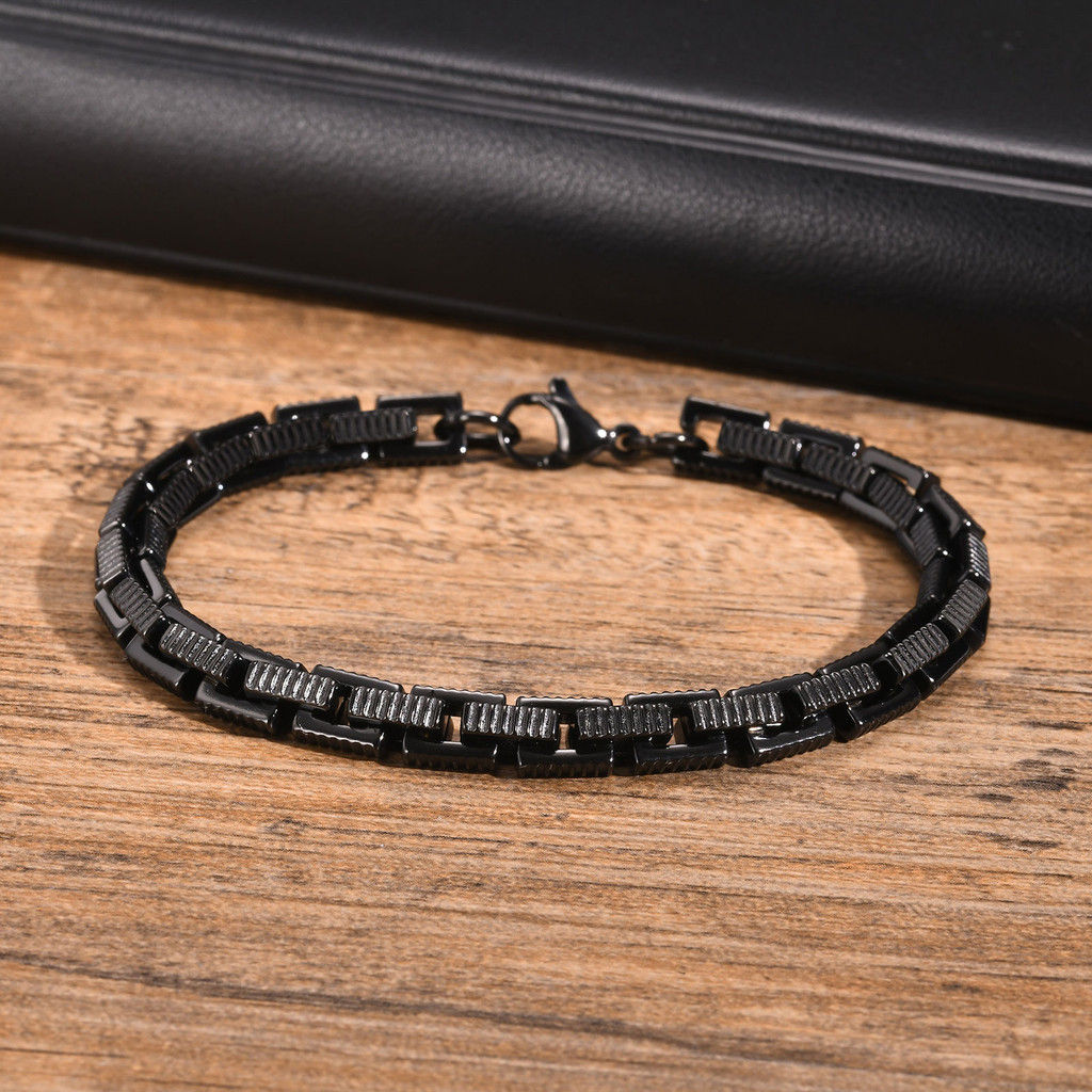 Pulseira De Âncora De Corrente Quadrada Feita À Mão Em Relevo De Aço Inoxidável Vnox Para Homens , Retrô Clássica , Pres