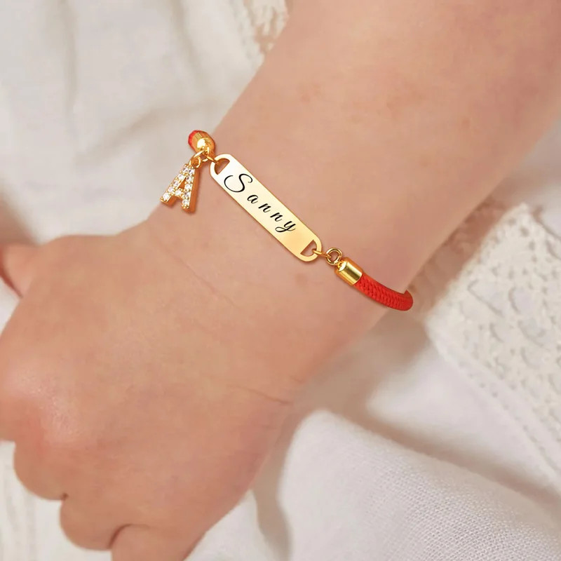 Pulseira De Bebê Com Nome De Letra Inicial Personalizada Vnox , Presente De Nascimento De Criança Recém-Nascida , Corda