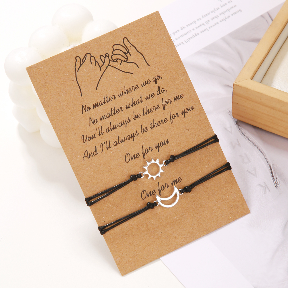 Pulseira De Casal De Sol E Lua Com Fio De Cera Ajustável , Presente Feito À Mão Para Ele Ela