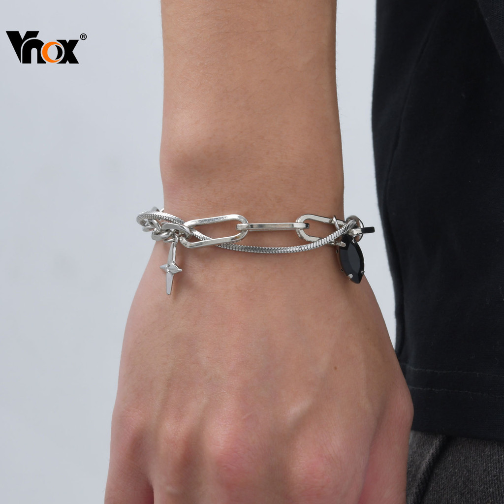 Pulseira De Corrente De Elo De Estrela Cúbica De Zircônia Preta Vnox Para Homens , Hipoalergênica De Aço Inoxidável , Pr