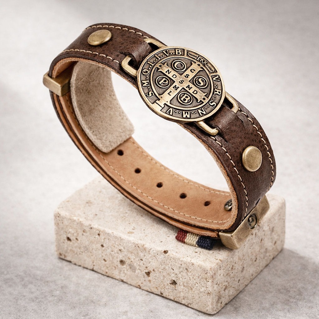 Pulseira de Couro Masculina Country Ajustável São Bento Proteção - Diversos Modelos