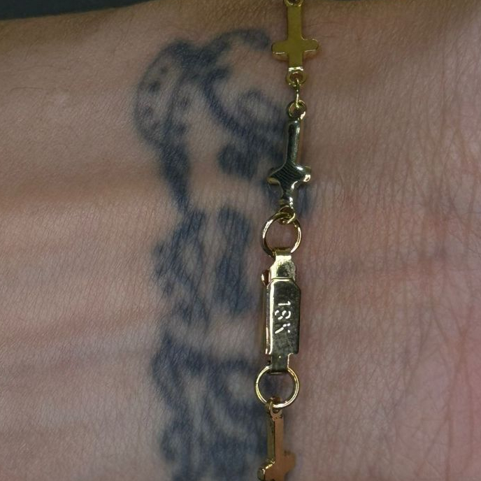 Características do produto: • Material: liga de alta qualidade com banho de ouro 18K • Design: cruzes interligadas em toda a extensão da pulseira • Estilo: unissex, versátil e atemporal • Fecho seguro e resistente • Não ajustável Destaques: • Pulseira de cruz banhada a ouro 18K – brilho e sofisticação • Acessório religioso e de moda • Excelente opção para presente • Combina facilmente com outras pulseiras e correntes Adicione essa pulseira de cruz ao seu estilo e tenha um acessório elegante para qualquer ocasião.