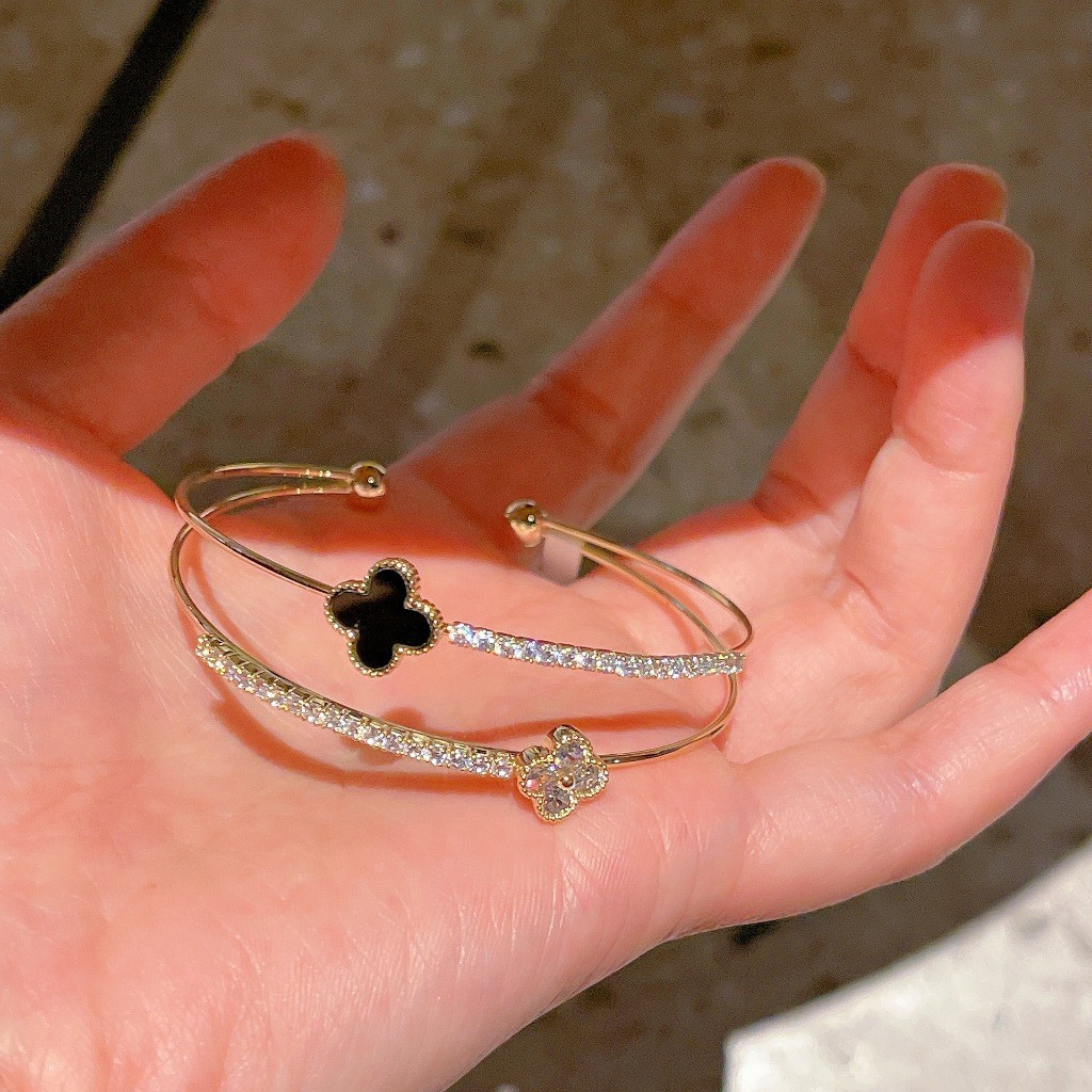 pulseira de dupla camada trevo de quatro folhas 2024 nova pulseira requintada aberta temperamento