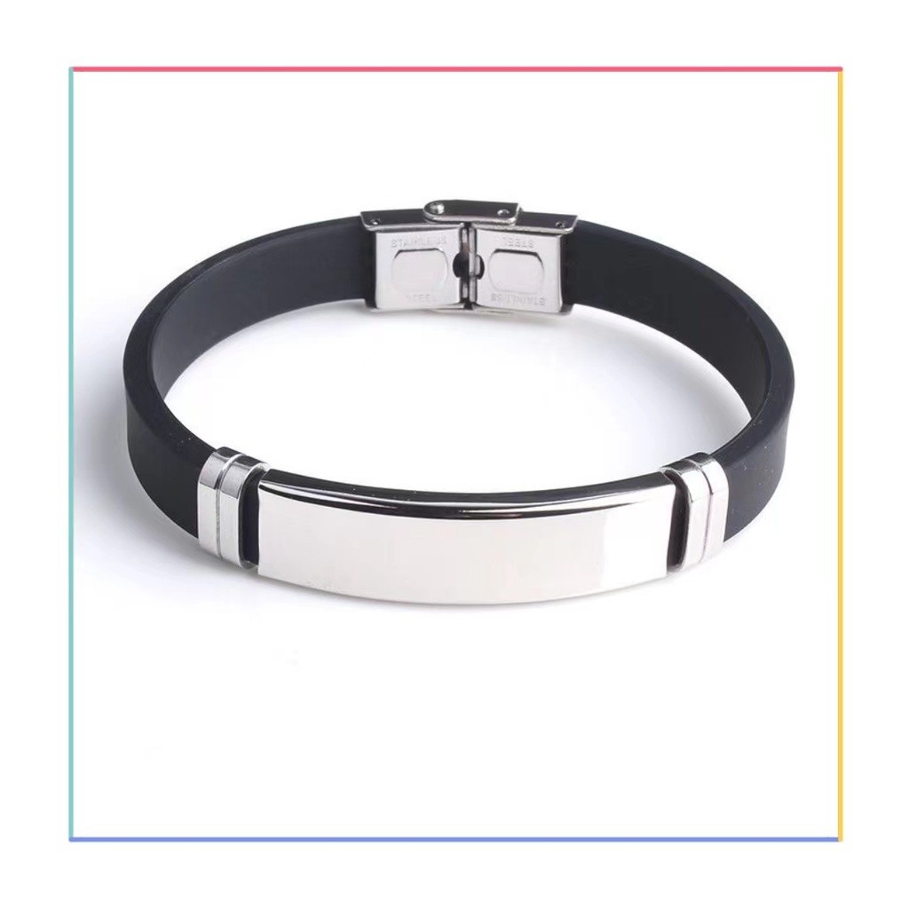 Pulseira de Identificação com Placa de Aço Inox - Estilo Masculino, Silicone Preto e Dourado