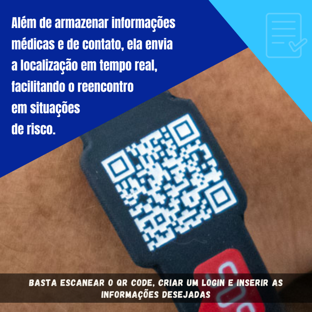 Pulseira QR Code Conecta Sentidos & Cores SOS Preta Oferecendo SEGURANÇA e PRATICIDADE, esta pulseira apresenta mais de 8 FUNÇÕES essenciais, incluindo dados pessoais, contatos de emergência e ficha médica. Características: - Material: Silicone antialérgico, à PROVA D'ÁGUA - TAMANHOS VARIADOS para diferentes faixas etárias - Instruções simples para uso e SUPORTE exclusivo para MEMBROS Ideal para VIAGENS, atividades diárias e EMERGÊNCIAS, garantindo cuidado e proteção para quem você ama. ENVIO IMEDIATO!