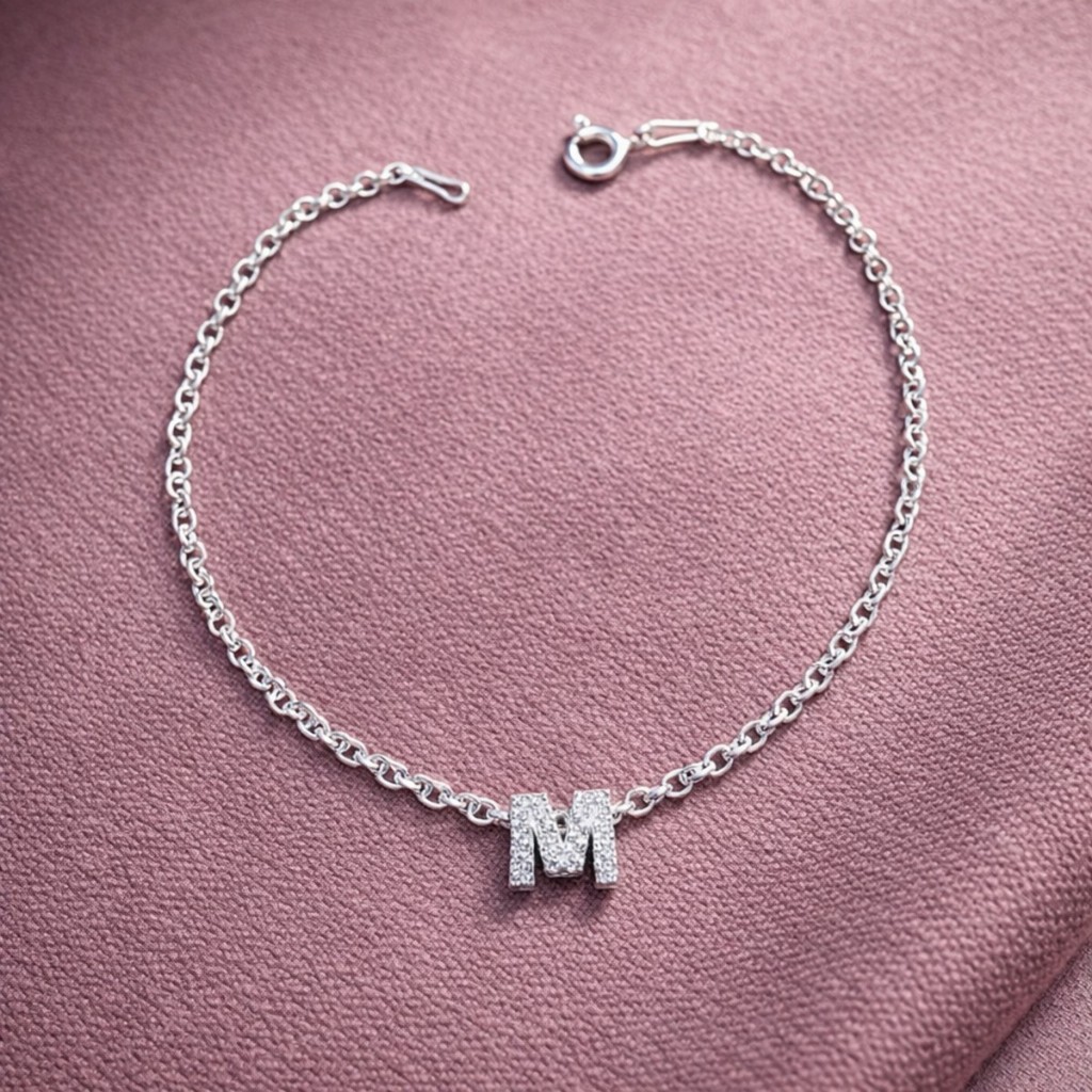Pulseira elo português com letra cravejada com pedras zircônias Em PRATA 925 Peça com um excelente acabamento Acompanha certificado de garantia permanente do teor da prata Informações técnicas sobre a peça: * Largura do pingente : 0,5 cm (aproximado) * Altura total do pingente: 0,7 cm (aproximado) Comprimento da pulseira: 18 cm (aproximado)