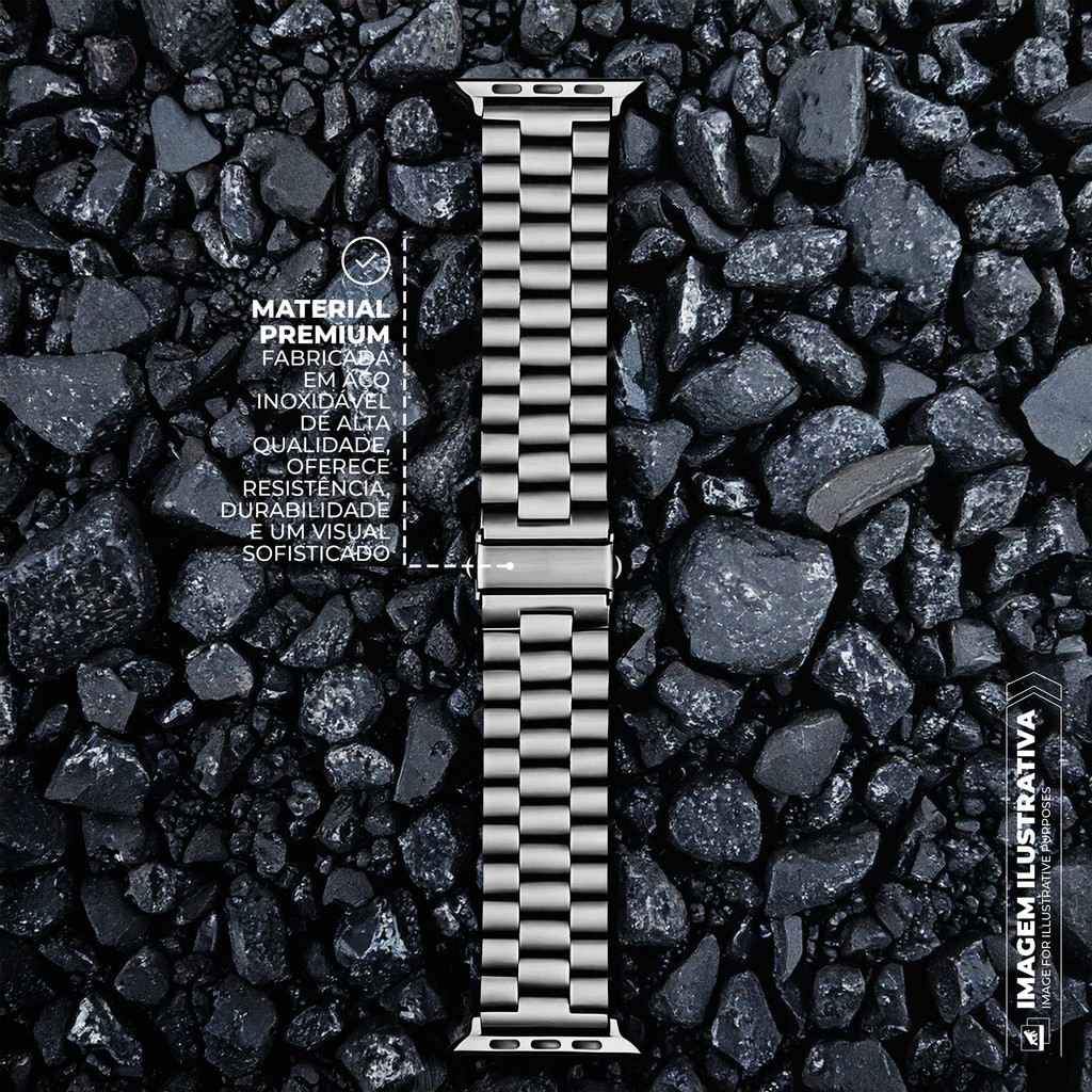 A Pulseira Metal Armor para Apple Watch da Gshield é a escolha ideal para quem busca um acessório sofisticado, resistente e funcional. Com um design robusto e acabamento premium, essa pulseira transforma o visual do seu Apple Watch, conferindo um toque de elegância e durabilidade sem comprometer o conforto. Fabricada em aço inoxidável de alta qualidade, a Metal Armor oferece resistência superior a impactos, arranhões e desgaste do dia a dia, garantindo um acessório duradouro e confiável. Seu acabamento refinado proporciona um visual sofisticado, tornando-a perfeita para qualquer ocasião – do ambiente profissional a momentos casuais. O design articulado da pulseira permite um ajuste preciso ao pulso, proporcionando um encaixe confortável e seguro. O fecho dobrável garante praticidade e firmeza, mantendo o relógio sempre bem posicionado sem risco de soltura acidental. Disponível nas cores prata e preto, a Pulseira Metal Armor combina perfeitamente com diferentes modelos de Apple Watch, realçando o design do dispositivo e oferecendo uma estética moderna e versátil. Seja para um look mais clássico ou para complementar um estilo mais arrojado, essa pulseira se adapta a qualquer ocasião. Se você busca resistência, elegância e um encaixe perfeito, a Pulseira Metal Armor para Apple Watch é a escolha definitiva para elevar o seu smartwatch a um novo nível. Garanta já a sua e experimente o equilíbrio perfeito entre robustez e sofisticação! ESPECIFICAÇÕES - Marca: Gshield - Regulagem: Fecho dobrável - Material: Aço inoxidável NÃO ACOMPANHA RELÓGIO * IMAGENS APENAS PARA ILUSTRAÇÃO COMPATIBILIDADE - Compatível com Apple Watch 38 / 40 / 41MM ITENS INCLUSOS - 1x Pulseira