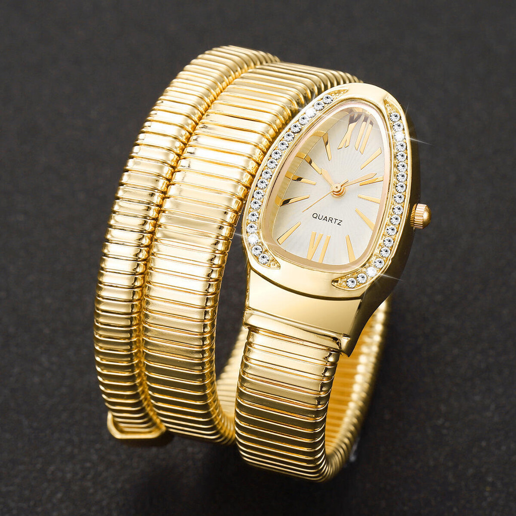 Pulseira de moda em forma de cobra com strass relógio de quartzo