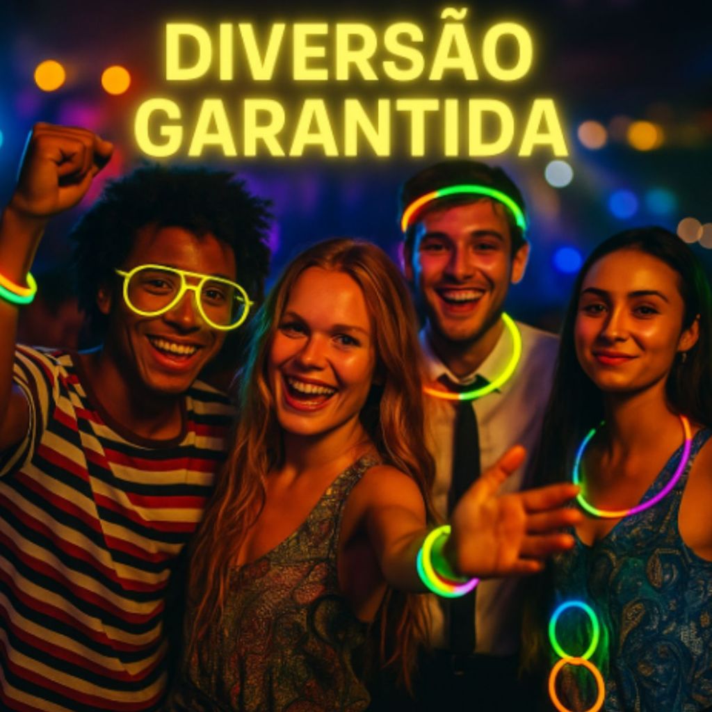Pulseira de Neon P/ Festas até 200 Convidados - Brilha no Escuro Intensamente Acessório de Festa