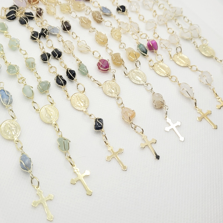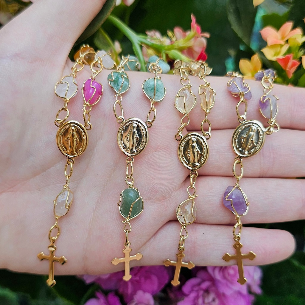 | Pulseira de Pedra Natural Tercinho com Cruz Folheada a Ouro este produto | R$ 23,00 | 8% | 4.9/5 | 5 |