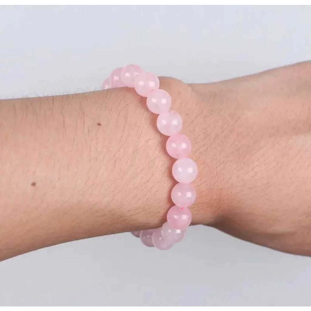 Pulseira De Pedra Quartzo Rosa Natural Esfera JOIA ENERGIA ESPIRITUAL Tamanho 8 Mm - Pedra Do Amor