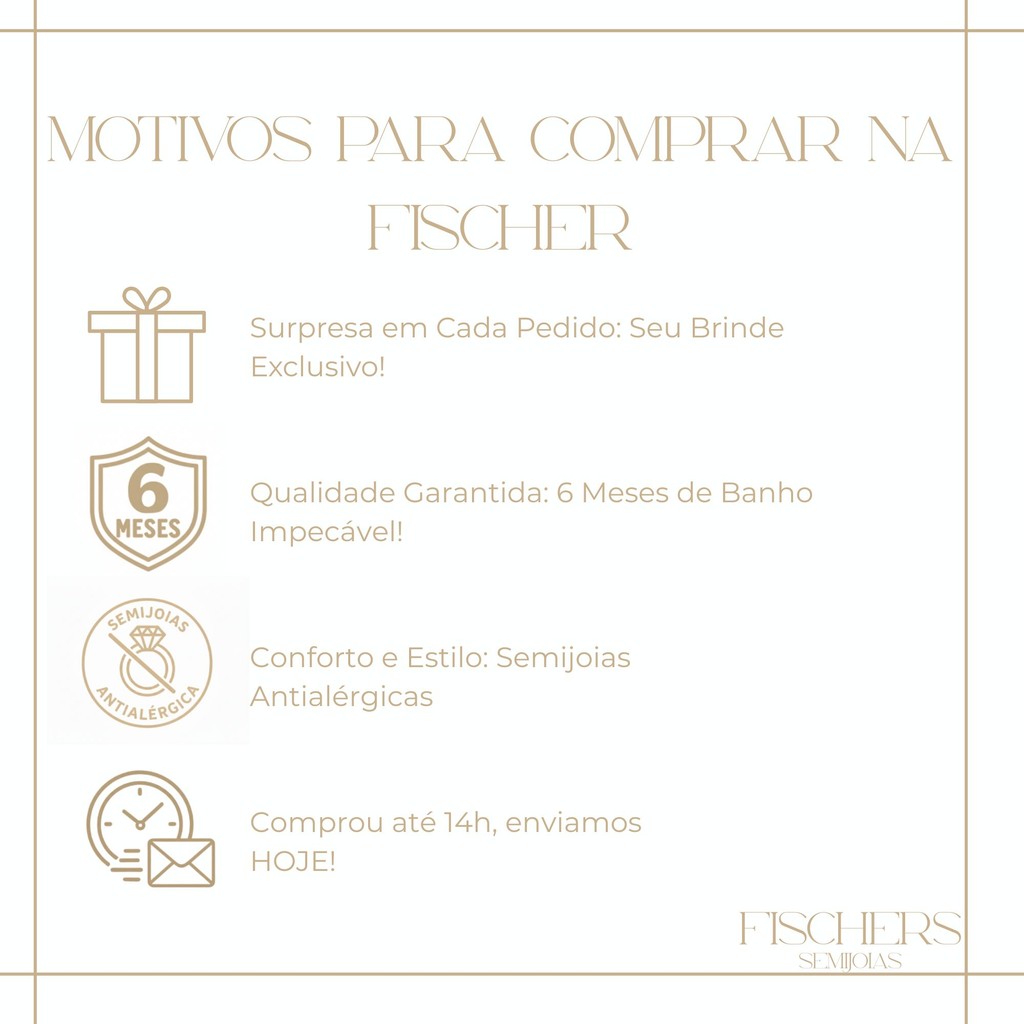 Elegância Atemporal e Toque de Luxo A Pulseira de Pérolas é um ícone da joalheria, sinônimo de elegância e feminilidade. Esta peça une o charme clássico das pérolas com a modernidade de uma corrente banhada a ouro, resultando em um acessório versátil que se adapta a qualquer ocasião, do casual ao social. É a escolha perfeita para um presente sofisticado ou para complementar seu mix de acessórios. ✨ Qualidade e Especificações Técnicas Material: Semijoia de alta qualidade. Detalhes: Pérolas sintéticas ou Madrepérola. Banho: Banhado a Ouro 18k (Ouro Amarelo). Comprimento da Pulseira: 17 cm de corrente + 3 cm de extensor ajustável (total de 20 cm). 🔒 Compromisso Fischer Semijoias: Sua Compra Protegida Sua satisfação e tranquilidade são nossa prioridade máxima. Ao comprar conosco, você garante: Garantia Exclusiva: 6 (seis) meses de garantia no banho da peça. Mimo Especial: Brinde surpresa em todos os pedidos! Um presente carinhoso para você celebrar sua nova aquisição. Garanta já a sua peça e desfile com um clássico!