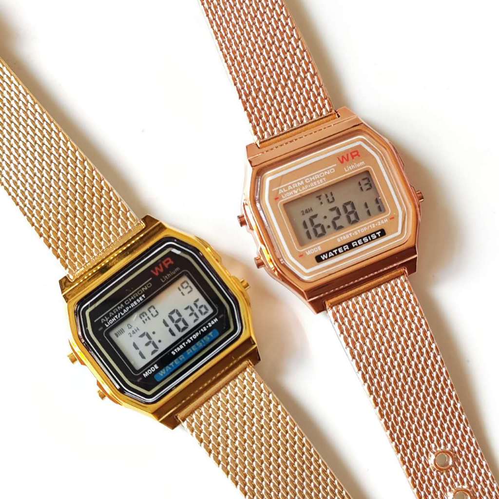 Pulseira de plástico de malha de relógio digital feminino quadrado