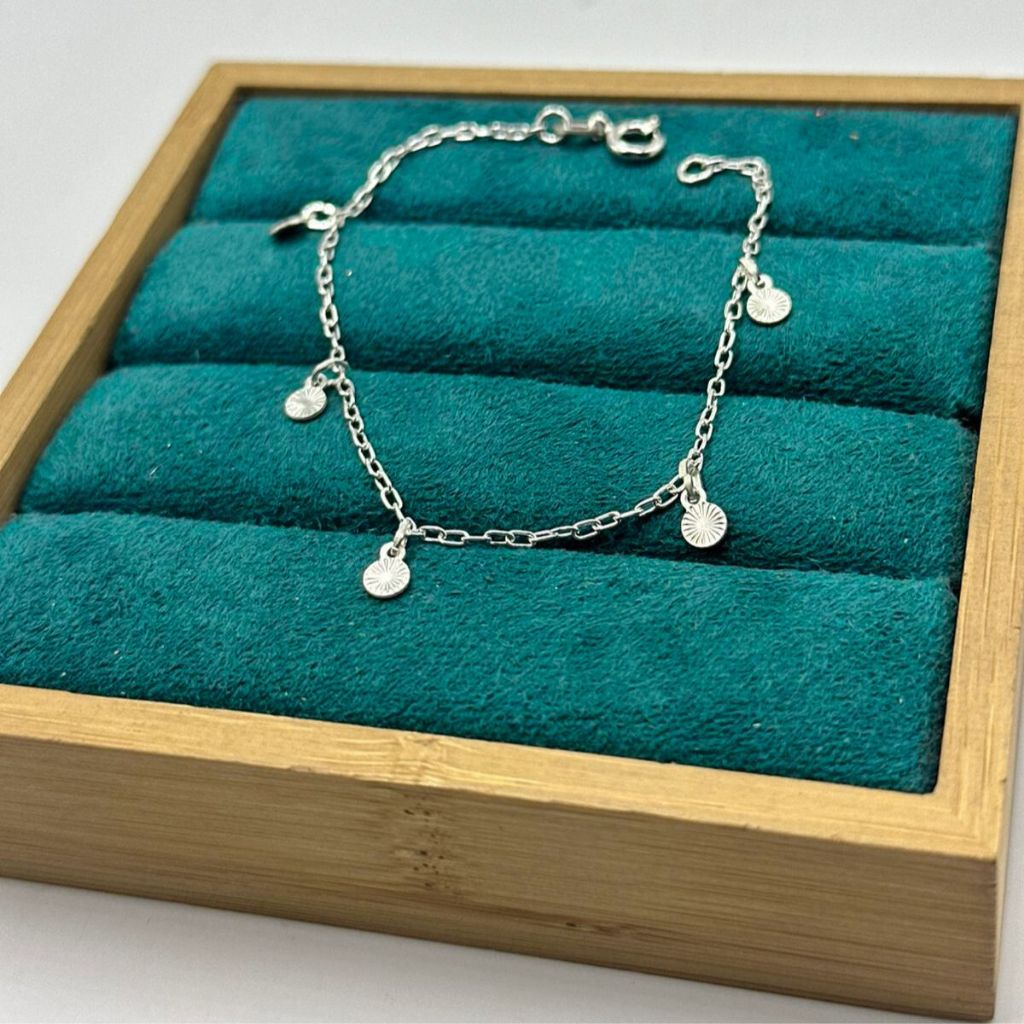 Pulseira de prata 925 círculos diamantados 18cm