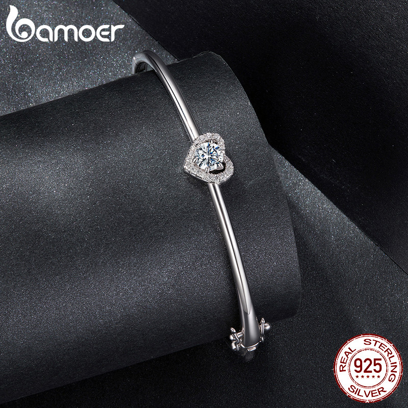 Pulseira De Prata Esterlina 925 Bamoer Coração Moissanite 17 19 Cm Joias Presentes Para Mulheres