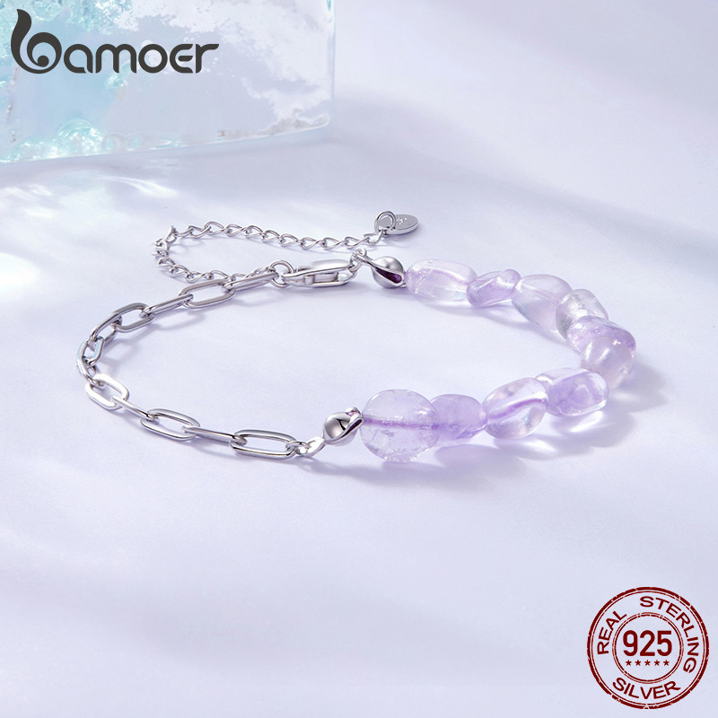 Pulseira De Prata Esterlina 925 Bamoer Lucky Ametista Design Joias Presente Feminino
