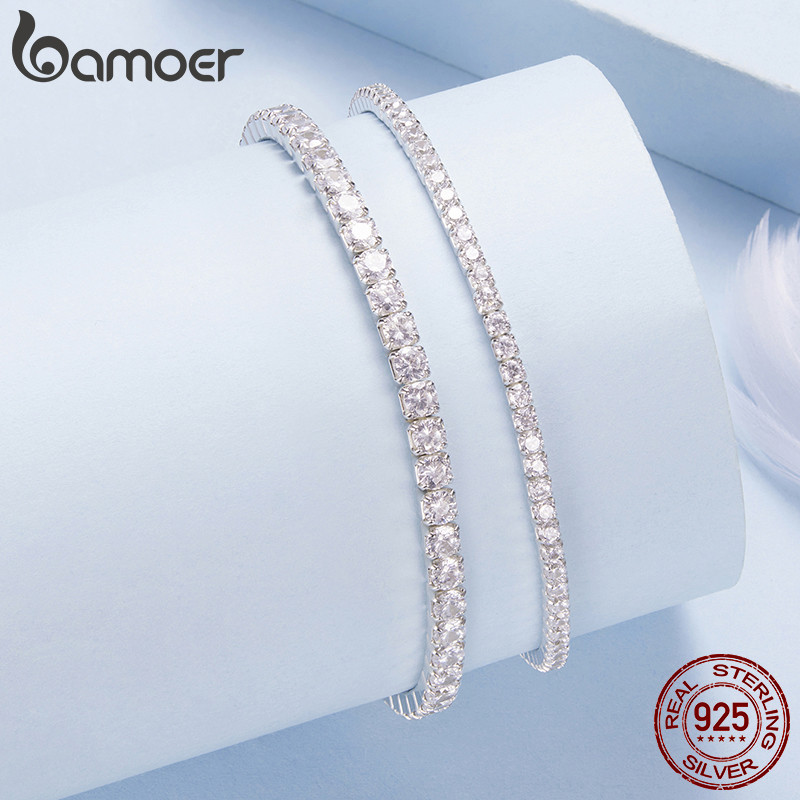 Pulseira De Prata Esterlina 925 Bamoer Luxo Zircão 16 E 18 CM Joias Extensíveis Presentes Para Mulheres