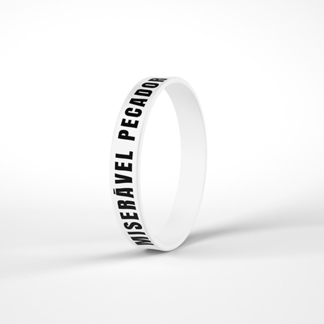 Pulseira de Silicone Branca | Miserável PecadorSilicone Confortável sobre Graça e Redenção Uma mensagem impactante sobre graça. A pulseira branca é confeccionada em silicone de alta qualidade, sendo um acessório durável e confortável que lembra de nossa condição sem Cristo e da imensidão de Sua graça salvadora.