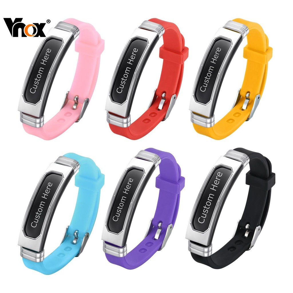 Pulseira De Silicone Personalizada Vnox Para Homens E Mulheres , Nome De Gravação Em Aço Inoxidável Multicolorida Joias