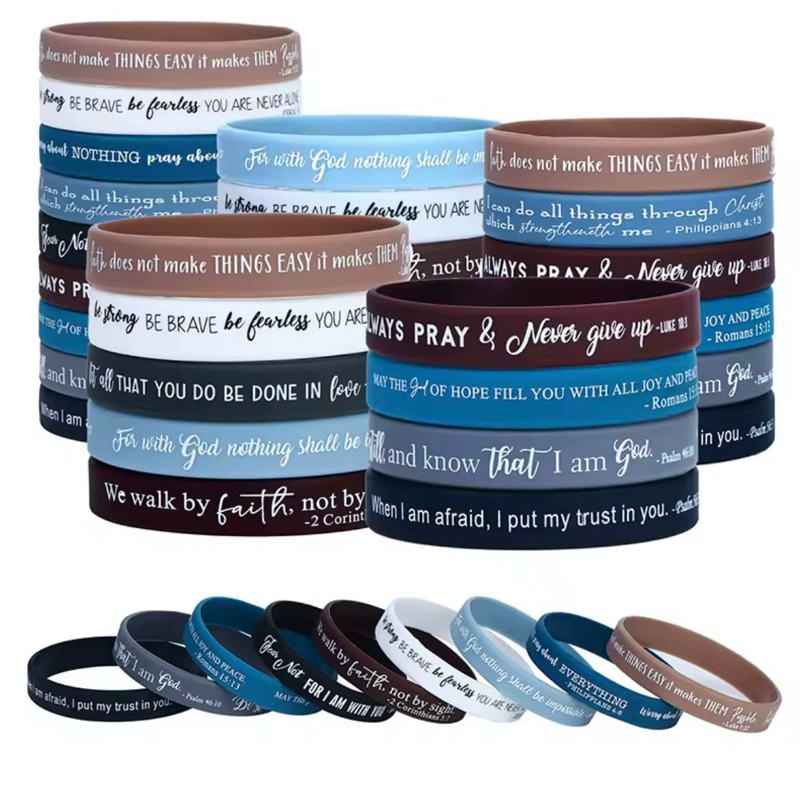 *Valor referente a 1 unidade. *As cores podem ter um tom levemente diferente das fotos. ***Tamanho Único: aproximadamente 21cm*** *Aconselhamos fazer a medição do seu punho antes de realizar a compra! ;D Fortaleça sua fé no dia a dia com esta linda pulseira de silicone cristã, leve, confortável e resistente. Cada pulseira traz versículos bíblicos e frases inspiradoras, perfeitas para lembrar do amor de Deus em qualquer momento. Características: •Material: Silicone macio e resistente •Unissex •Leve, confortável e ajustável ao pulso •Estampa com mensagens cristãs e trechos bíblicos •Ideal para uso diário. Benefícios: •Inspira fé e positividade todos os dias •Ótima opção de presente para amigos e familiares Dica: Use sua pulseira como símbolo de fé e compartilhe a palavra de Deus com quem você ama!