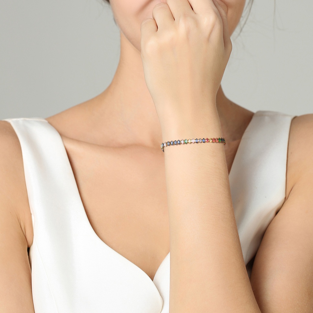 Pulseira De Zircônio Colorido Vnox Cubic Bracelet , Ouro 18K Bracelete De Aço Inoxidável Brilhante Para Mulheres , Presente Elegante
