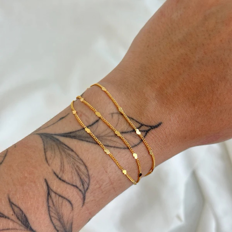 Pulseira Dupla Mini Coração Pulseiras Mini Corações Feminina Diamantada Folheado a Ouro 18K