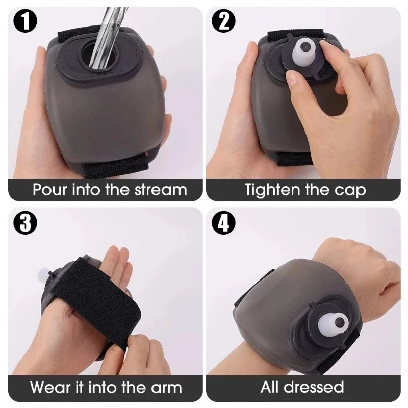 Feito de silicone de qualidade alimentar, é macio, elástico e não é facilmente deformado. Esta mini garrafa de água está bem presa ao seu pulso e mantém você hidratada a qualquer hora e em qualquer lugar. Entusiastas da condicionamento físico que querem beber mãos livres durante a corrida, ciclismo, ou caminhadas. Feito de materiais duráveis, resistente a rachaduras ou vazamentos. Usar uma garrafa de água esportiva para reabastecer a água no tempo é perfeita para viagens, corridas, caminhadas, ciclismo, escalada de rock, camping, ioga, academias, e outras atividades internas ou ao ar livre. Especificações Nome da água do pulso portátil: Garrafa de água do pulso portátil Material do produto: silicone + PP Cor de rosa: Preto, branco, laranja Capacidade: 200ml O pacote de água de pulso inclui: 1 * garrafa de água de pulso