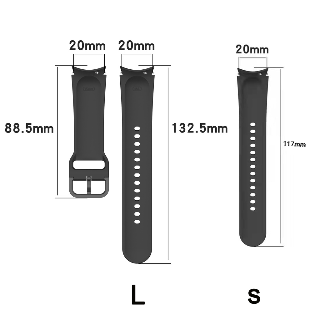 Compatível com: Relógio Samsung Galaxy Watch 7 40mm 44mm Relógio Samsung Galaxy FE 40mm Relógio Samsung Galaxy Watch 6 40mm 44mm Relógio Samsung Galaxy 6 Clássico 43mm 47mm Relógio Samsung Galaxy 5 Samsung Galaxy Watch 5 pro Relógio Galaxy Samsung 4 40mm 42mm Relógio Galaxy Samsung Galaxy Watch 4 Clássico 46mm 42mm Destaques do mesmo: 1.Relógio Samsung Galaxy 2.Comprimento da alça, tem 2 tamanhos: Tamanho pequeno: 88,5 mm + 117 mm; Tamanho grande: 88,5 mm + 12,5 mm 3.Acessório leve e confortável com acabamento liso para visual esportivo em todo seu pulso 4.Feito de silicone durável e macio para suportar o desgaste diário 5.Uma grande gama de cores está disponível para escolher combinar com seus looks diários com preços acessíveis 6.Com pinos de liberação rápida, instalação fácil e direta e remoção de um botão Obs:se você não pode aceitar aberração cromática de cor, Por favor, considere antes de encomendar o produto O pacote do pacote inclui: Alça de silicone 1* Alça de silicone