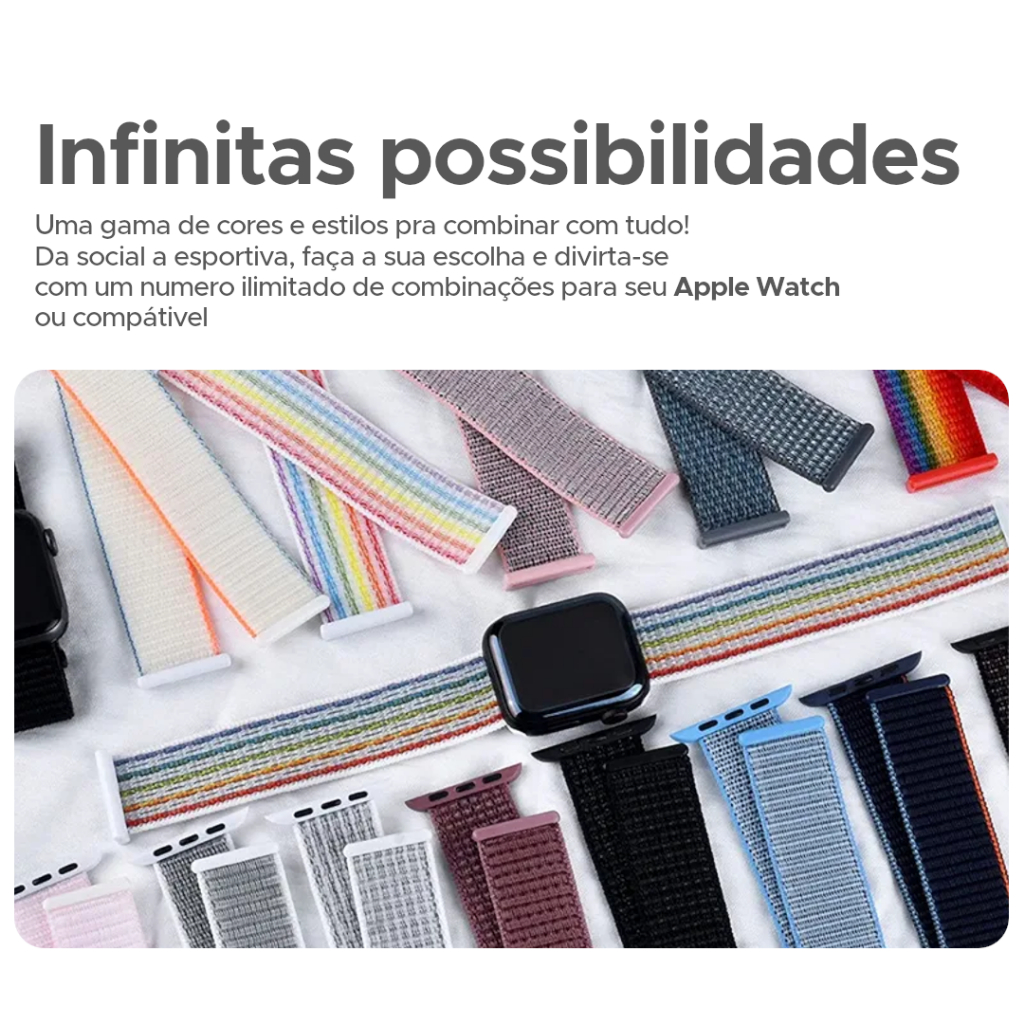 Pulseira Esportiva Smartwatch Nova Nylon Loop Apple Watch 42/44/45/49mm 38/40/41mm Series 1 2 3 4 5 6 7 8 9 10 Se Ultra