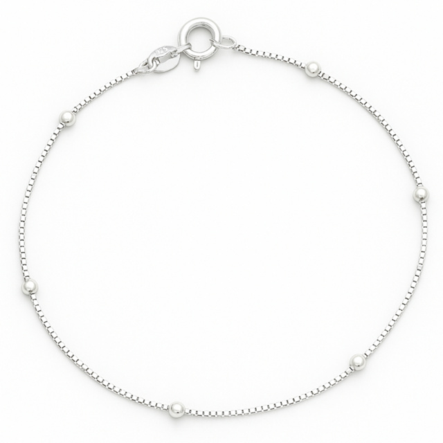 Pulseira Feminina Banhada a Prata 925 Legítima Veneziana Feminina Delicada Bolinha V12 Pulsera Fina