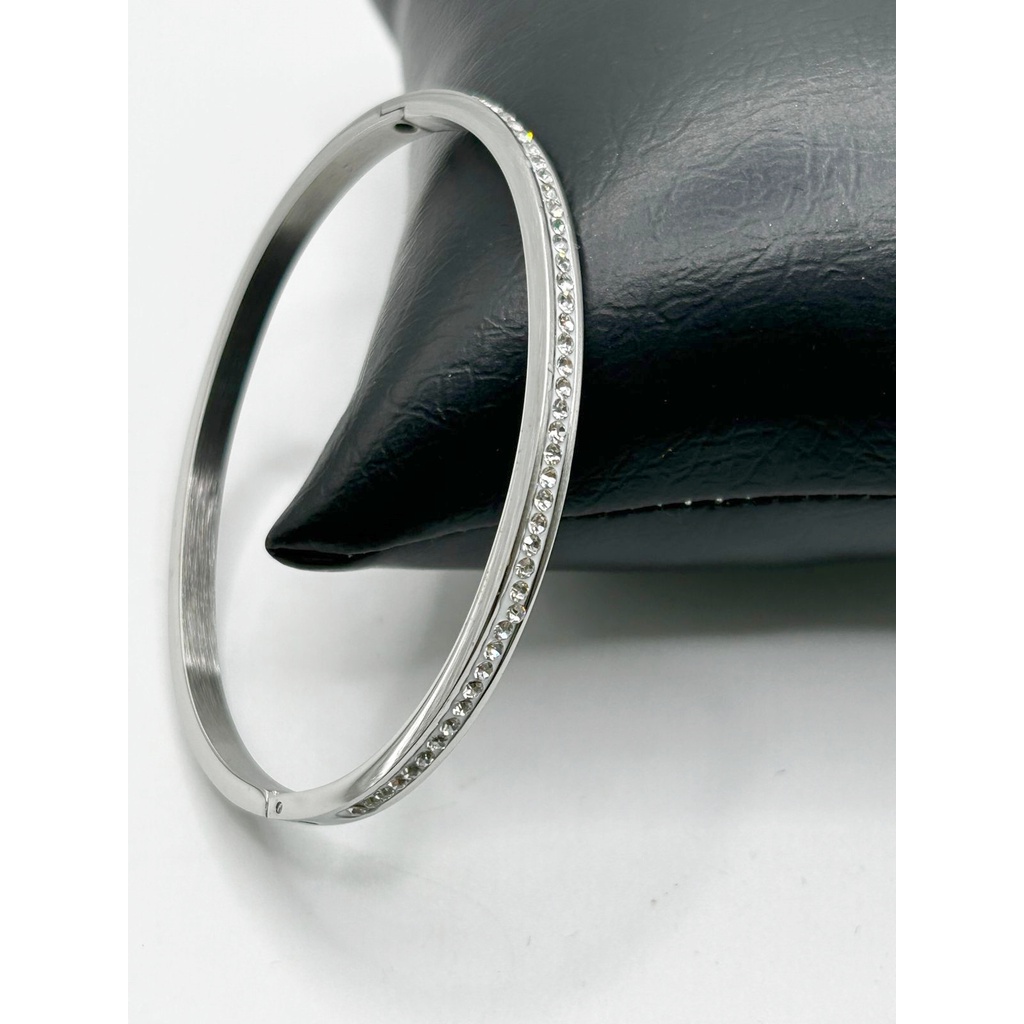Pulseira Feminina De Aço Inoxidável Com Rebite De Zircão De Linha Única