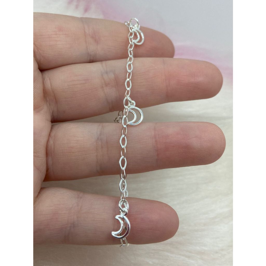 Pulseira Feminina de Prata 925 5 Luas Pendentes lisas
