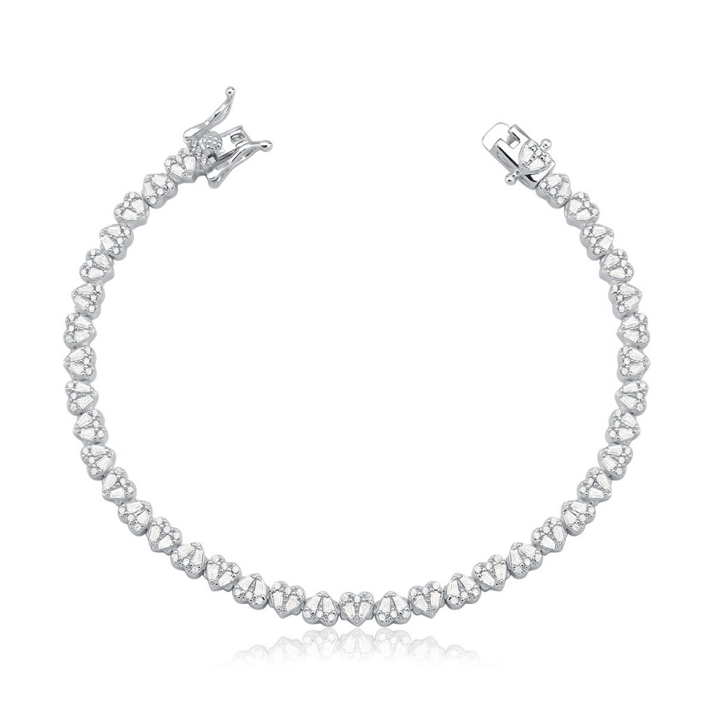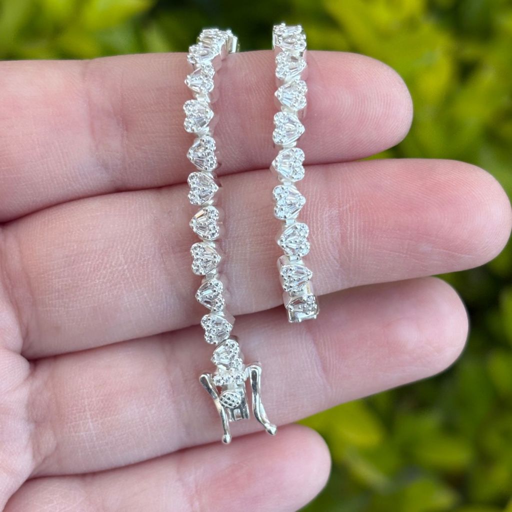 Pulseira Feminina de Prata 925 Corações Detalhado e Cravejados