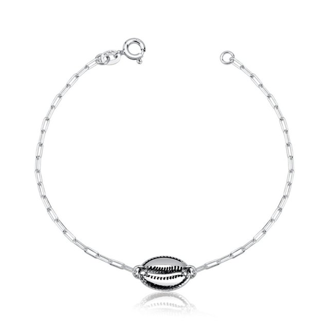 Pulseira Feminina de Prata 925 Elo Quadrado com Búzio