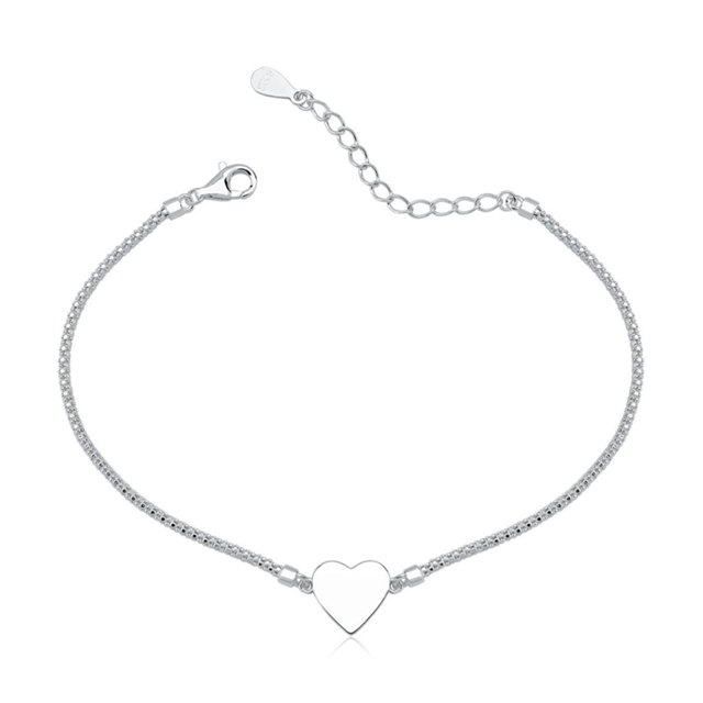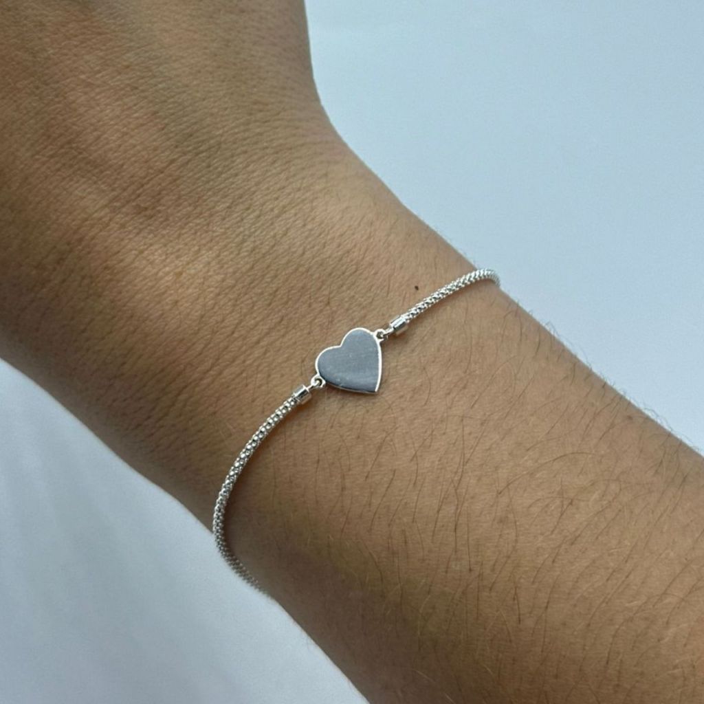Pulseira Feminina de Prata 925 Pipoca Diamantada com Coração Liso