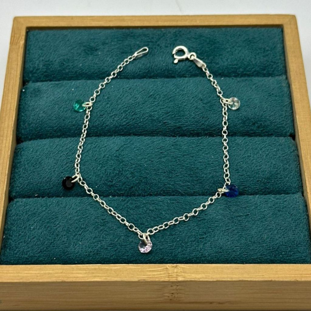 Pulseira Feminina de Prata 925 Redondo Colorido