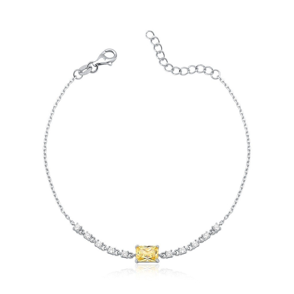 Pulseira Feminina de Prata 925 Retângulo com Zircônia