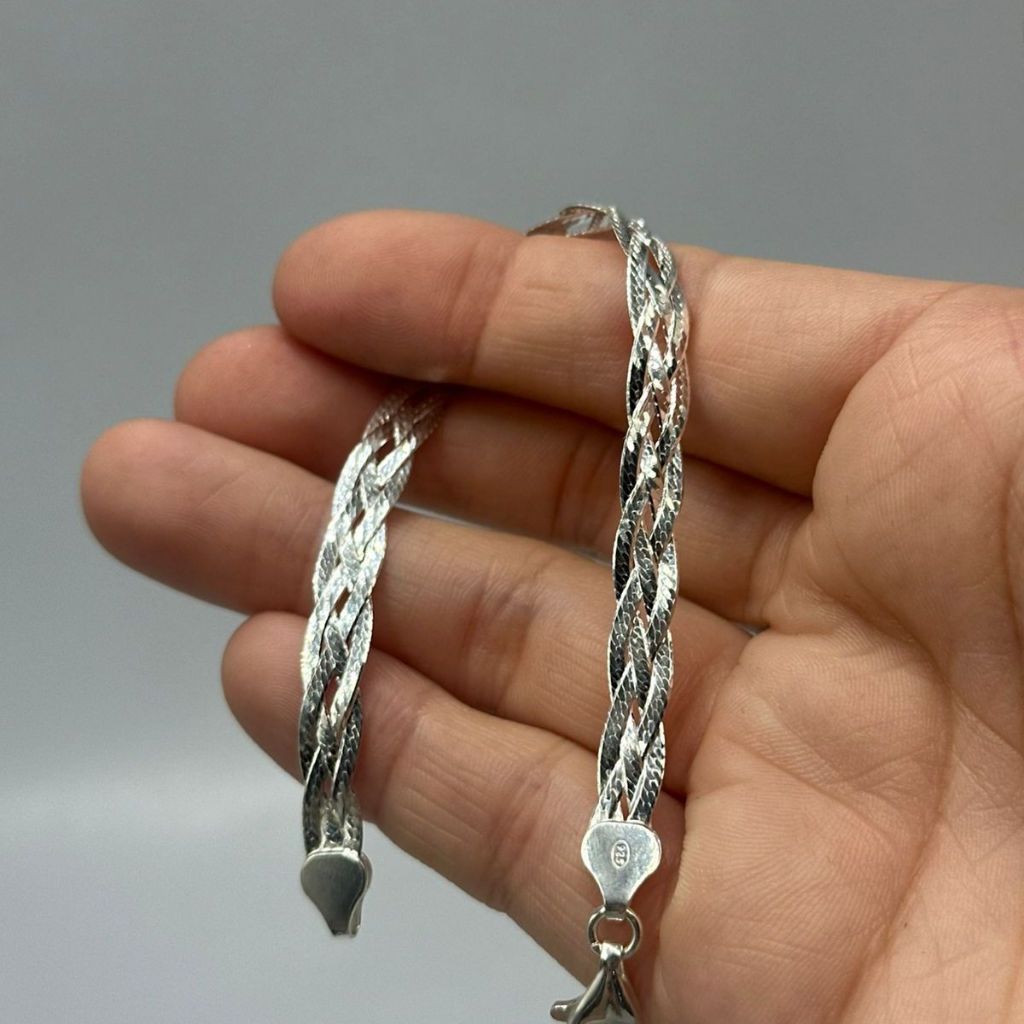 Pulseira Feminina de Prata 925 Trançada com 4 Fios