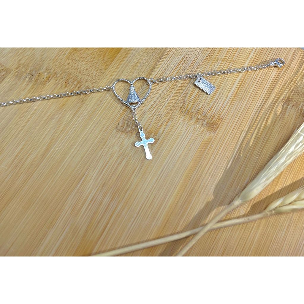 Pulseira Feminina Delicada Nossa Senhora com Coração Prata 925 Banhada.